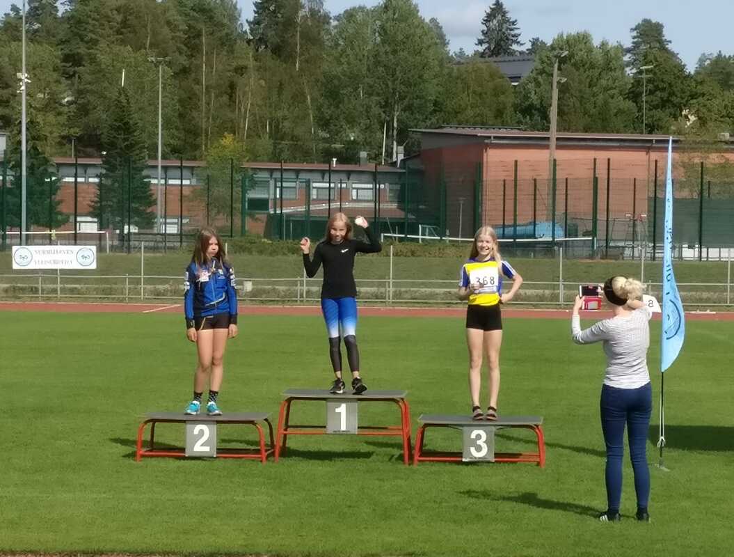 Yleisurheilun 9-15 vuotiaiden piirinmestaruudet ratkottiin 24.-25.8. Nurmijärven Klaukkalassa. Kotiin tuomisina oli yhteensä 18 mitalia: 4 kultaa, 6 hopeaa ja 8 pronssia. Tuplamestareita kisoista saatiin kaksi: P14 sarjan Saku Rönkkö voitti kuulantyönnön omalla ennätyksellään 10,28 ja ykköslajissaan keihäänheitossa voitto heltisi 44,05 lukemalla. Ville Tanskanen P10 sarjassa puolestaan otti mestaruudet kiekonheitossa ennätyksellään 21,78 ja 1000 m juoksussa ajalla 3.35,32. Näiden lisäksi molemmat pojat toivat 3 hopeaa: Saku kiekonheitossa ennätyksellään 26,06 sekä moukarissa niin ikään ennätystuloksella 25,53 ja Ville korkeudessa tuloksella 123, joka yllätys yllätys oli oma ennätys. Ville palkittiin lisäksi vielä kahdella pronssimitalilla: pituudessa, jossa jälleen oma ennätys 378 ja kuulassa tuloksella 6,53. Hopeamitaleita saatiin lisäksi P13 sarjassa, kun Emil Granström hyppäsi pituudessa oman ennätyksen 425 ja korkeudessa hopea irtosi tuloksella 129. Laura Karusalmi puolestaan sai hopeamitalin kaulaansa heitettyään T12 sarjan keihäässä tuloksen 19,71. Pronssimitaleita onnistuivat tuomaan lisäksi T14 sarjan tytöt: Marianna Utulahti keihäänheiton ennätyksellään 26,66, Vilma Meriläinen moukarissa ennätyksellään 28,94, Magdaleena Havukorpi 300 m aitajuoksussa ajalla 52,32 ja Anni Napari pituudessa tuloksella 440. Muita pronssimitalin tuojia saatiin T10 sarjassa, jossa Veera Keskinen nappasi tiukan juoksun kolmostilan ja sai oman ennätysajan 9,42. P11 sarjassa Teemu Tanskanen heitti kiekossa niin ikään kolmospallille oikeuttavan tuloksen 21,96. Kisojen kaikki tulokset löytyvät tilastopaja.fi -sivuilta. |